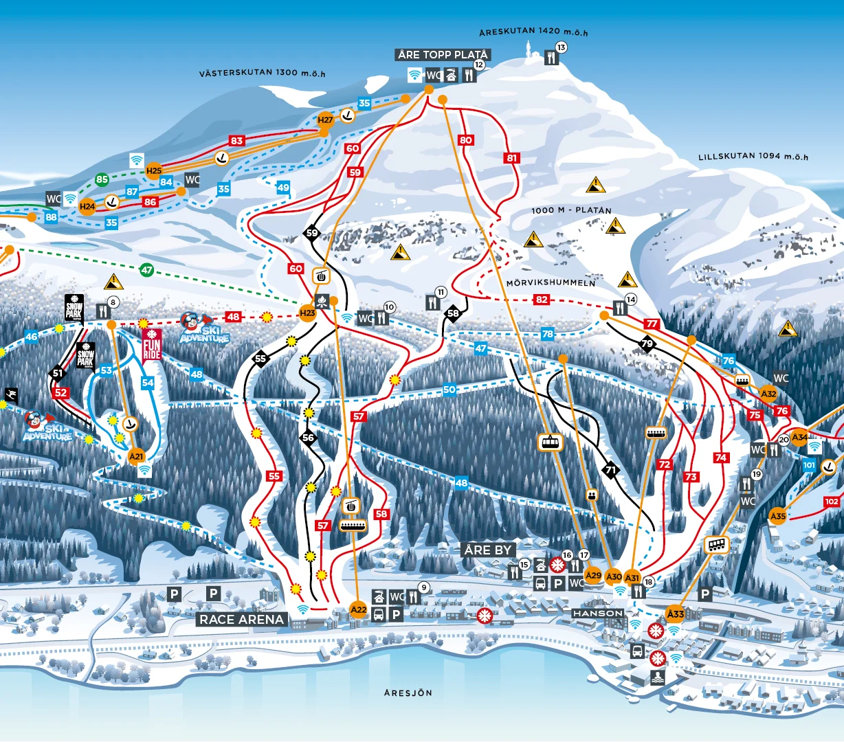Swedish Ski Instructor har oftast start och stopp-punkt för skidlektionerna vid basen av liften WM6’an, dvs mitt i hjärtat av systemet. Önskas annan start och stopp-punkt finns full flexibilitet för det.